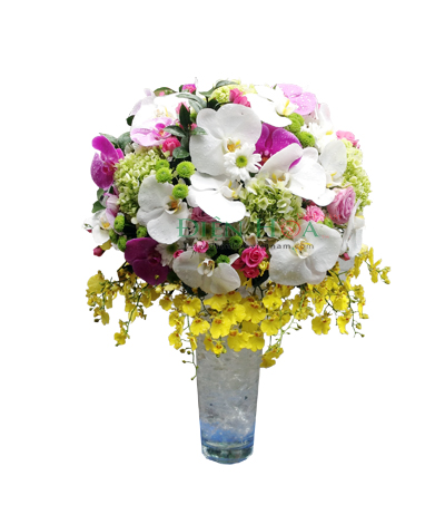 Hoa Tươi Toàn Cầu chuyên thiết kế bình hoa tươi tặng chúc mừng động thổ