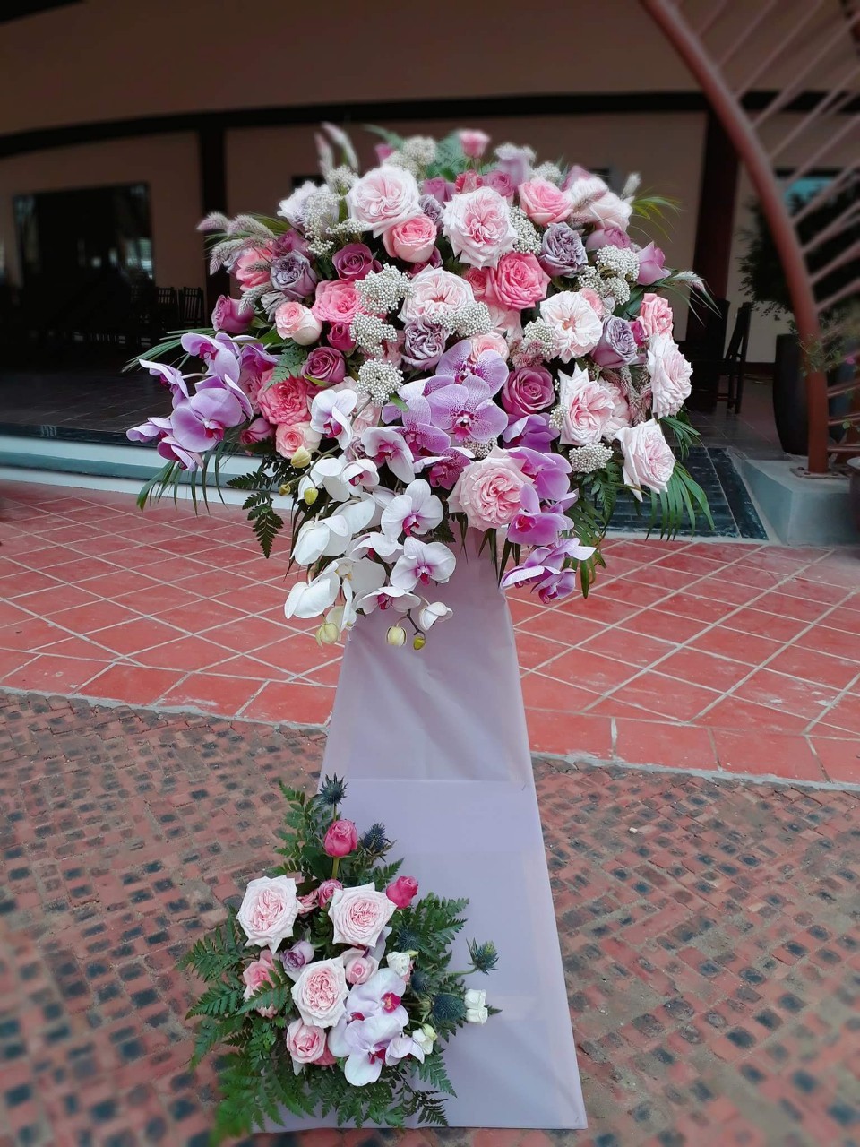 Mẫu kệ hoa, lẵng hoa trên được thiết kế bởi Hoa Tươi Toàn Cầu tại Bình Dương